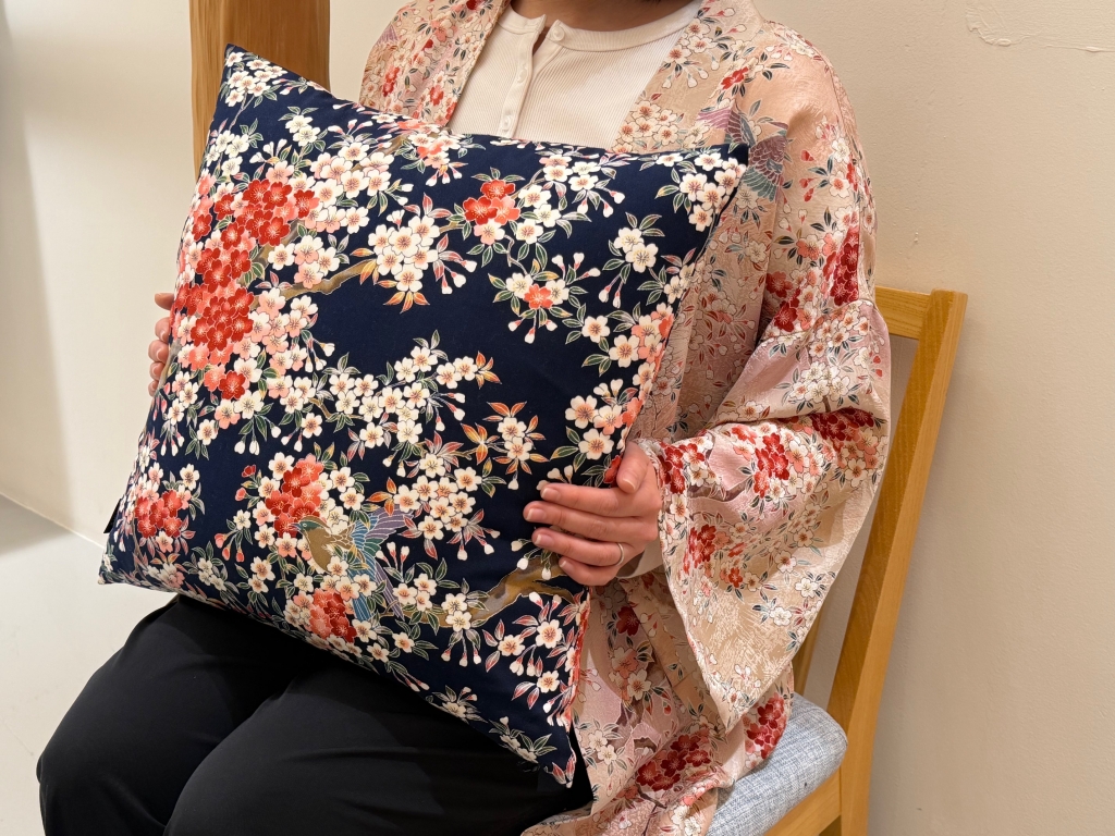 落ち着いたネイビーの背景がグッと桜柄を引き立てる、エレガントな印象のクッションカバーです。