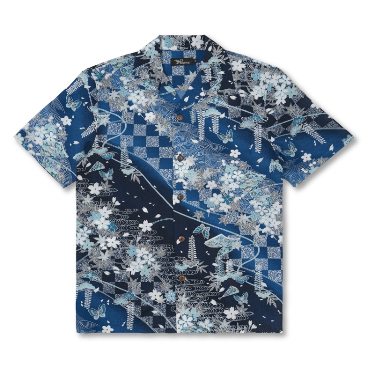 ドライアロハシャツ 桜ぼかし/紺