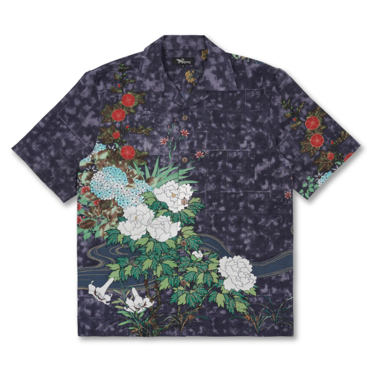 酒井抱一 ドライアロハシャツ 流水四季草花図/紫