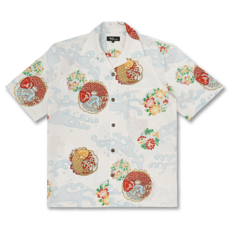 ドライアロハシャツ 荒磯丸文/白水色