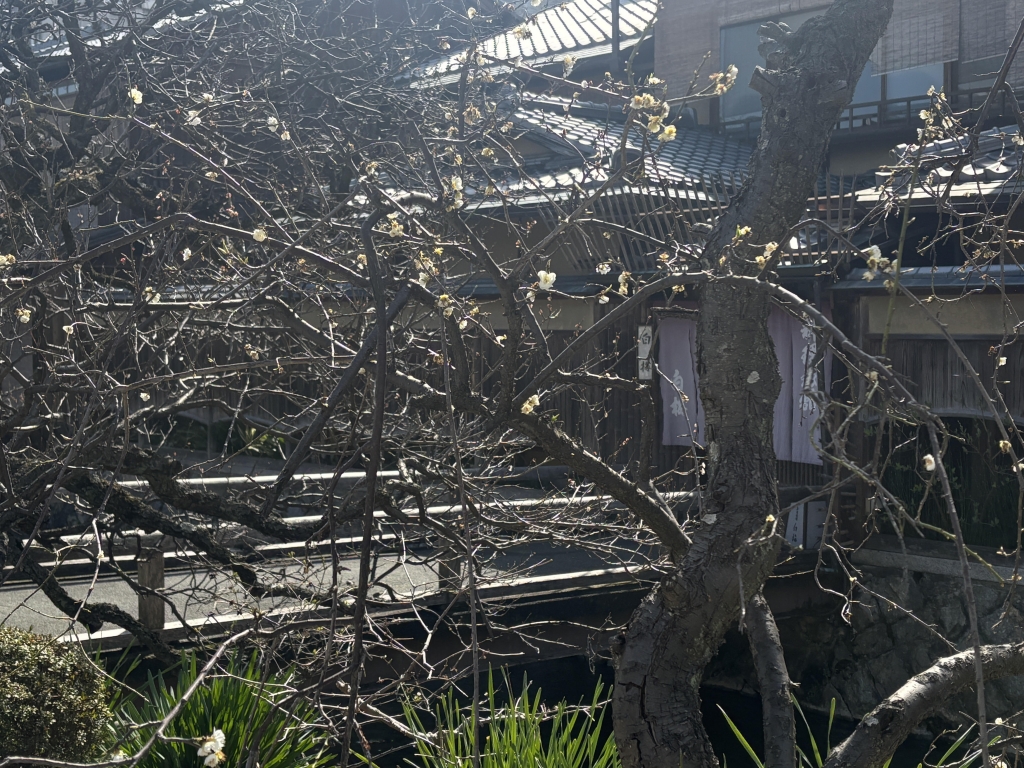 巽橋のあたりでは、梅の花がぽつぽつと咲き始めて、近づいて見ないと気づかないくらいの小さな春でした。