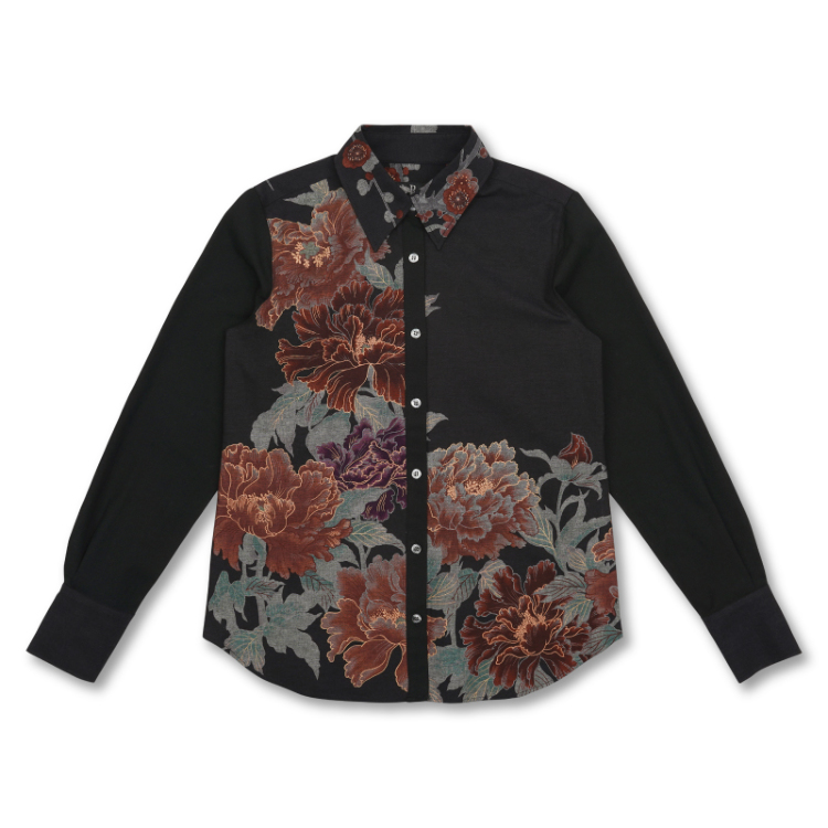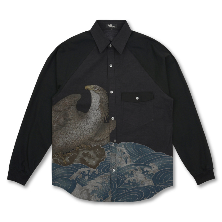 ▼和柄 ダンガリーオーバーサイズシャツ <鷲/黒>
