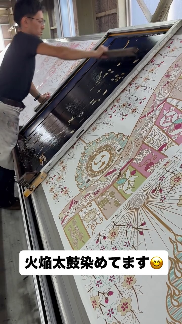 Pagongの生地は、京友禅の染屋「亀田富染工場」の職人が一色一色、手作業で染めています。